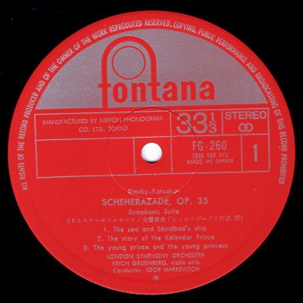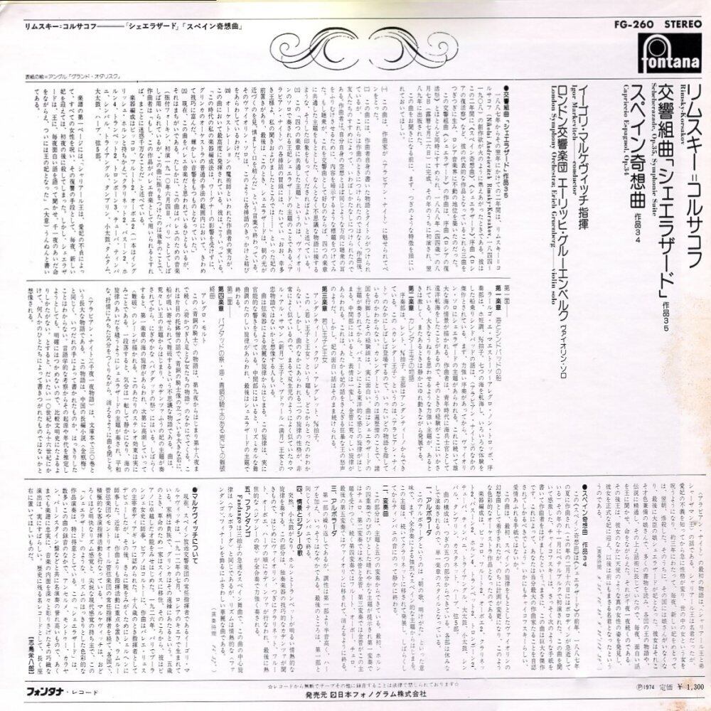 中古LPレコード:イーゴリ・マルケヴィチ(マルケヴィッチ) リムスキー=コルサコフ:「シェエラザード」「スペイン奇想曲」 fontana国内盤
