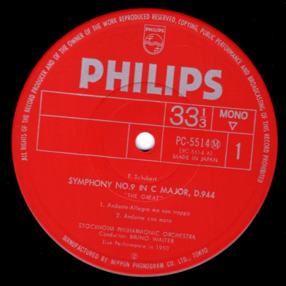 中古LPレコード:ワルター シューベルト:交響曲第9番「ザ・グレイト」(Rec.1950) PHILIPS国内盤